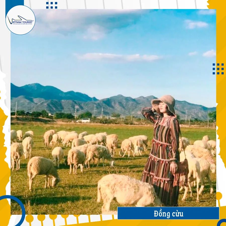 Điểm đến đầu tiên là Đồng Cừu – nông trại nuôi cừu thu hút khách tham quan nhờ không gian mở và đàn cừu thân thiện. Du khách được tự do đi lại trong nông trại, chạm tay vuốt ve và chụp ảnh cùng những chú cừu đáng yêu. Đây là hoạt động phù hợp với trẻ em và những ai yêu thích động vật.