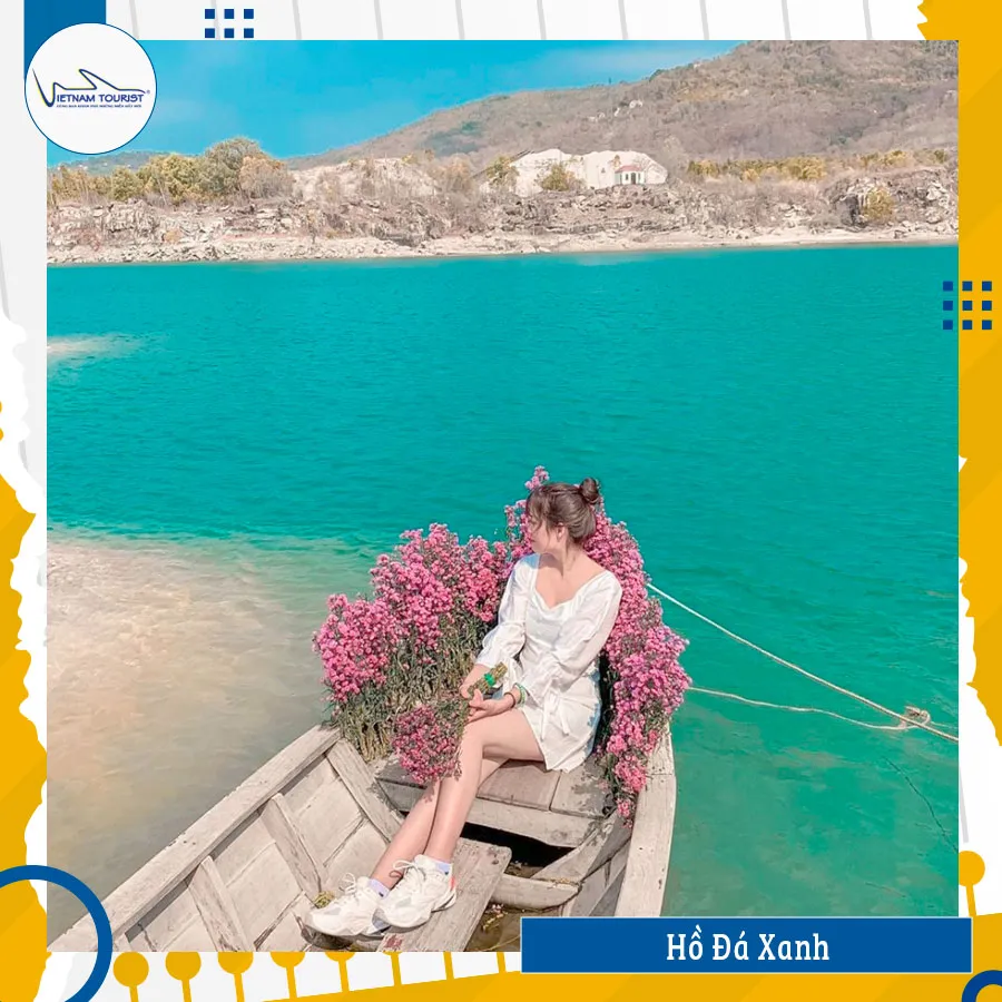 Tiếp theo, đoàn ghé thăm Hồ Đá Xanh – địa điểm nổi tiếng với mặt nước trong veo màu xanh ngọc bích, được bao quanh bởi núi non hùng vĩ. Khung cảnh yên bình tại đây tạo điều kiện lý tưởng để chụp ảnh với hồ nước, cây cầu gỗ và xích đu. Ánh sáng buổi sáng giúp ảnh có màu sắc rõ nét và tươi sáng hơn.